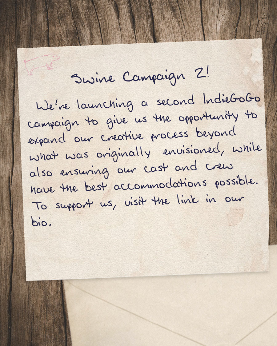 Continuing the in-universe aesthetic, we began releasing deeper narrative clues, visual fragments like items connected to the crime, while still grounding the audience in the reality that Swine is a senior thesis film seeking funding. When announcing our Indiegogo campaign, we maintained the immersive tone by using handwritten letters styled as if Sophie herself were speaking directly to the audience. We also revealed Sophie’s casting through a designed “suspect file,” sharing only character-based details rather than the actress’s name. Those familiar with the performer could recognize her, but within the world of the campaign, she existed solely as Sophie. This phase strengthened audience engagement by blending storytelling with strategic promotion.